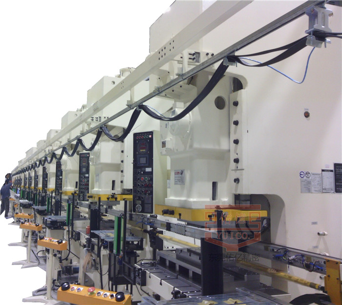 市面上有許多種形式的沖壓機(jī)械手,例如有:三次元機(jī)械手,單機(jī)多工位機(jī)械手,多機(jī)連桿式機(jī)械手。每種機(jī)械手所具備的功能也是不一樣的。多機(jī)連桿式機(jī)械手在汽車零配件沖壓中使用較多,可以搭配開卷機(jī),整平機(jī),伺服送料機(jī)等自動(dòng)送料設(shè)備實(shí)現(xiàn)與多臺(tái)沖床連線實(shí)現(xiàn)多個(gè)工序同步?jīng)_壓生產(chǎn)。