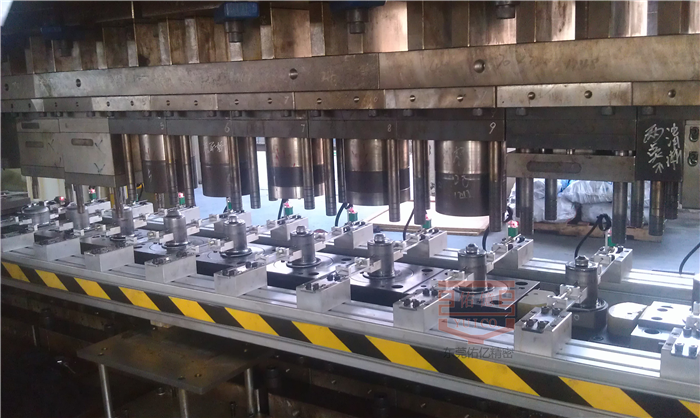對(duì)于配置有移動(dòng)工作臺(tái)之大型沖床,佑億亦提供移送桿自動(dòng)機(jī)臺(tái)器之選擇,實(shí)現(xiàn)全自動(dòng)換模作業(yè)。